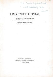 Særtrykk av artikkelen «Kristofer Uppdal – eit oversyn»