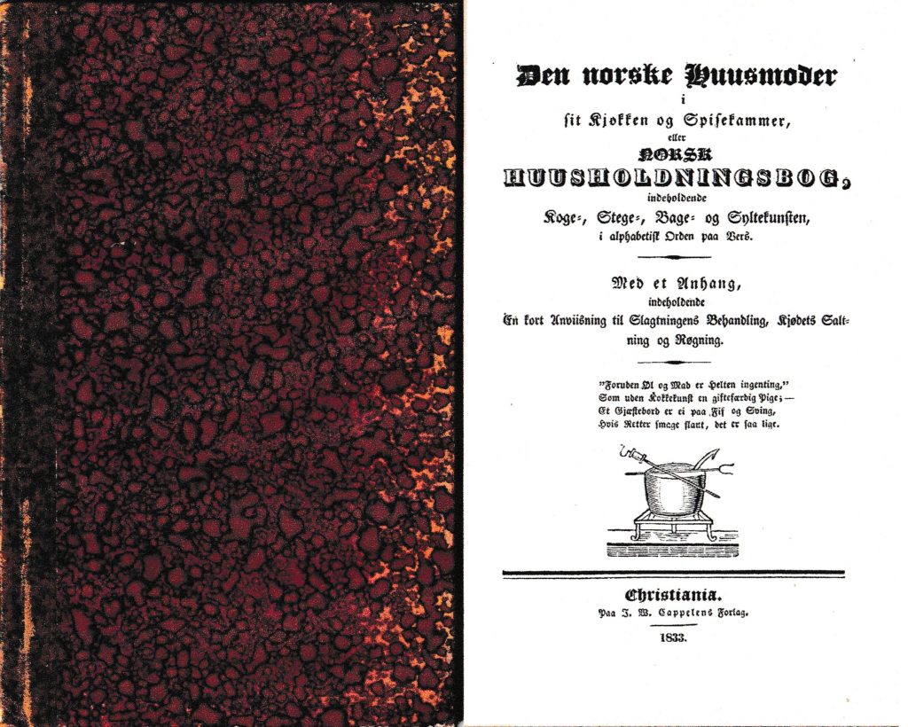 Utdraget er fra «Den norske huusmoder i sit kjøkken og spisekammer» eller «Norsk husholdningsbog i alfabetisk Orden paa Vers» som utkom på J.W.Cappelens forlag i 1833